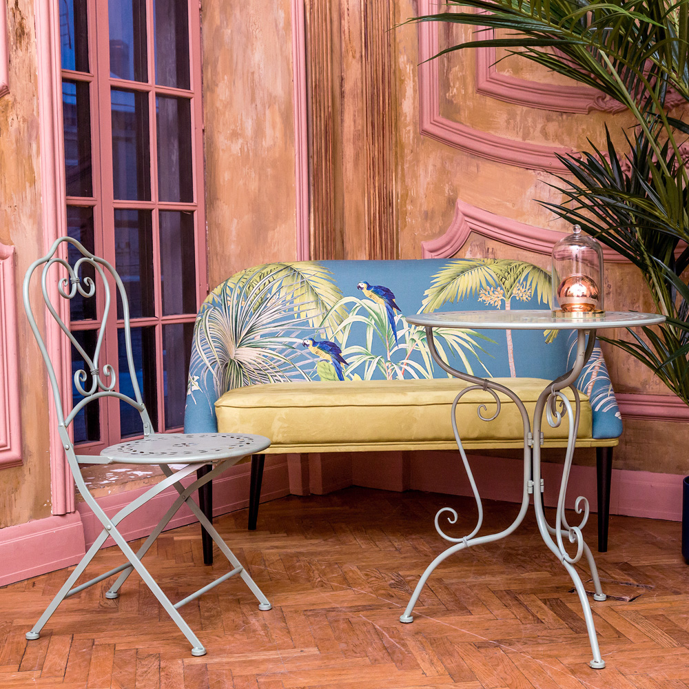 Необычный мятный оттенок мебели 'Жарден' смягчает интерьеры мятной свежестью, а на открытом воздухе блещет на фоне сочной природной зелени. Обратив внимание на столик 'Жарден', рассмотрите одноименные стулья, дизайн которых составляет со столиком единое целое.