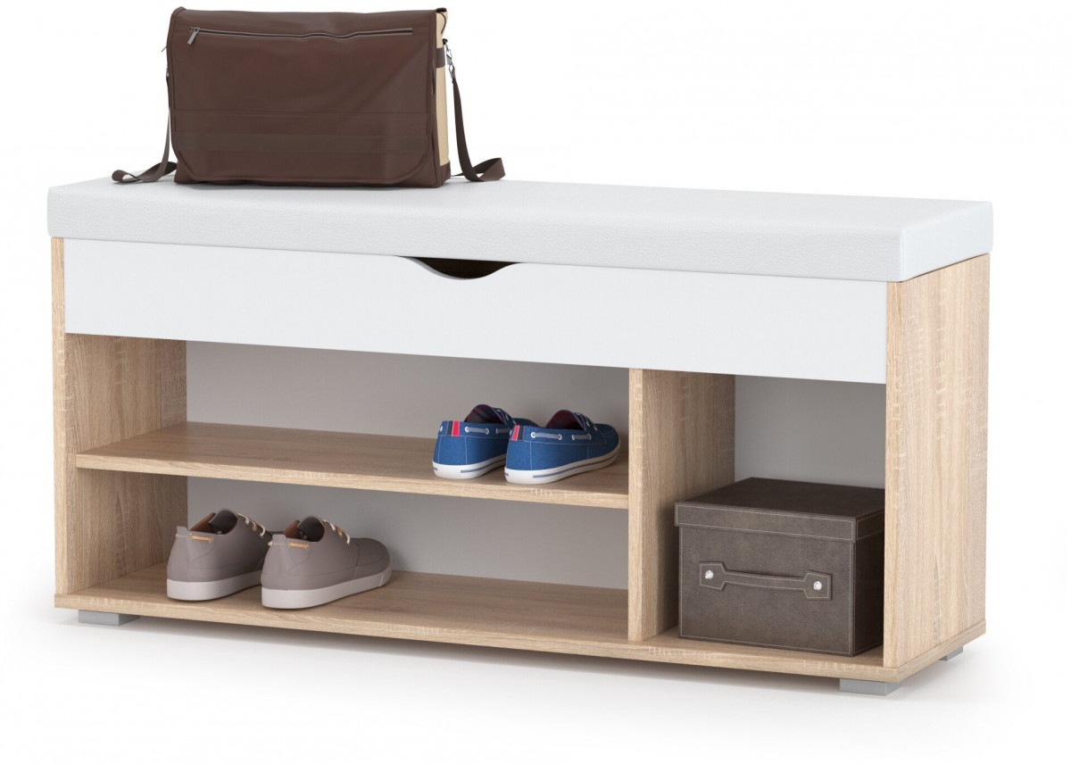 Тумба для обуви Лайт 08.58, цвет дуб сонома/белый/белая искусственная кожа