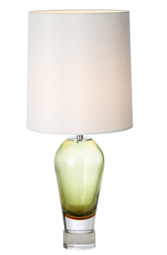 The Chaney olive green glass table lamp with tall cream shade is exquisite and delightful. It takes pride of place in many an interior setting.
